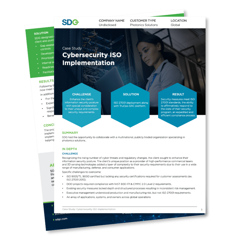 SDG partnered with a multinational, publicly traded photonics solutions provider to strengthen its information security program in the face of increasing regulatory pressure and customer scrutiny. Operating at the intersection of advanced manufacturing, defense, and commercial technology, the organization faced complex security requirements across a globally distributed environment.